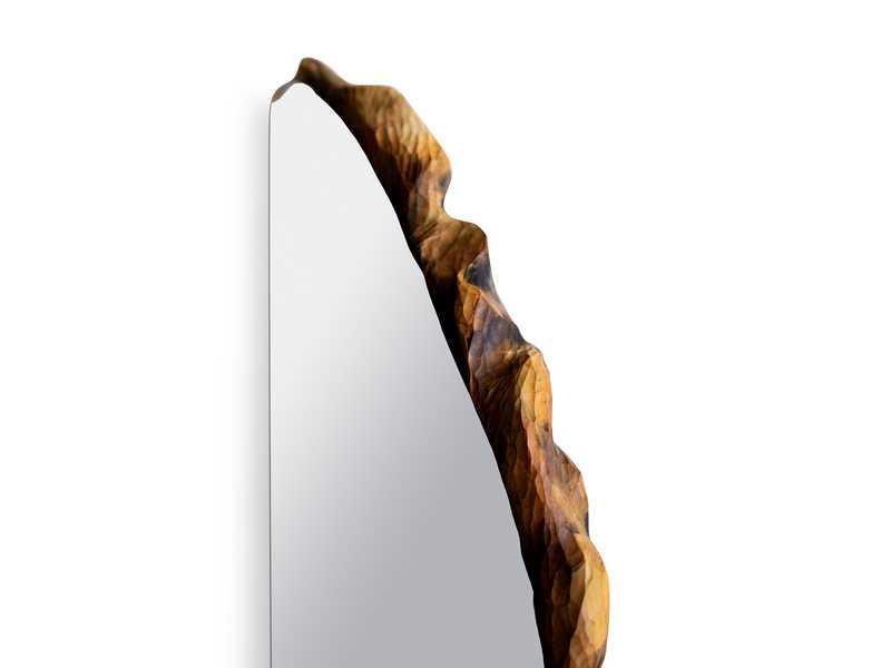 The work belongs to the sculptural mirror series fragment. While its form references fragment 2.2 (2024), it introduces a distinctly different material and emotional expression. For the first time in her practice, the artist employs egg tempera – a traditional painting technique in which pigments are bound with egg yolk diluted with water.