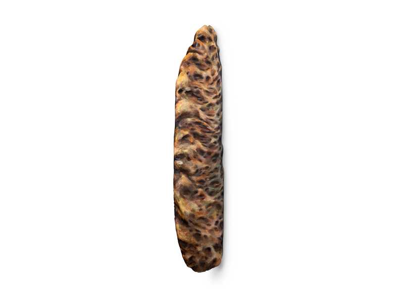 fragment 1965 was carved from delicate alder wood using a fine chisel and long, flowing movements. This process gives the surface a soft, pulsating quality, gradually establishing its identity. The final expression of the work emerges through the application of multiple thin layers of transparent egg tempera in shades of ochre and umber, lending the object both depth and subtle luminosity.