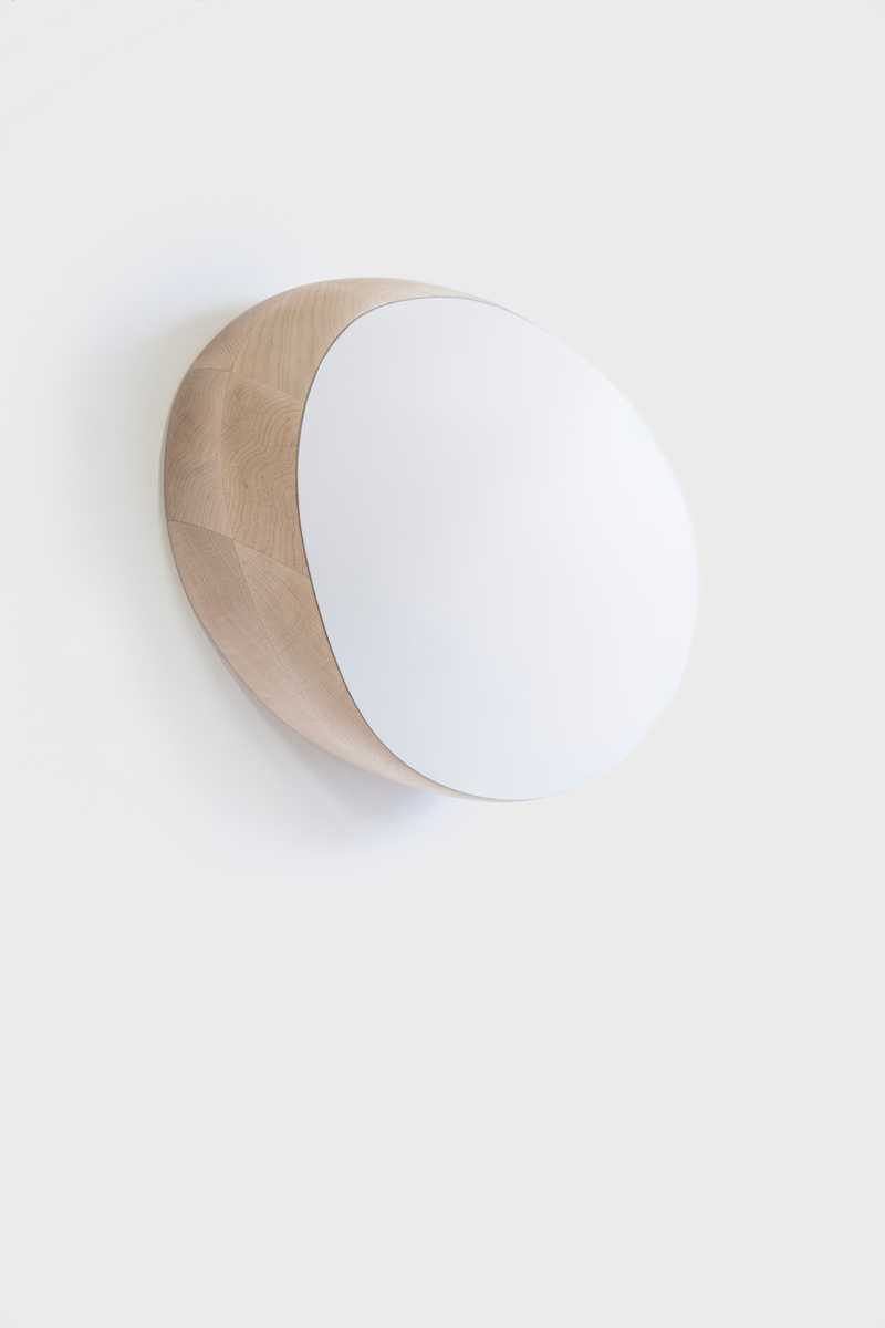 Każde lustro można łatwo zawiesić na ścianie w sześciu różnych pozycjach dzięki specjalnie zaprojektowanemu uchwytowi. Mogą one występować pojedynczo lub jako kompozycje złożone z wielu elementów.
