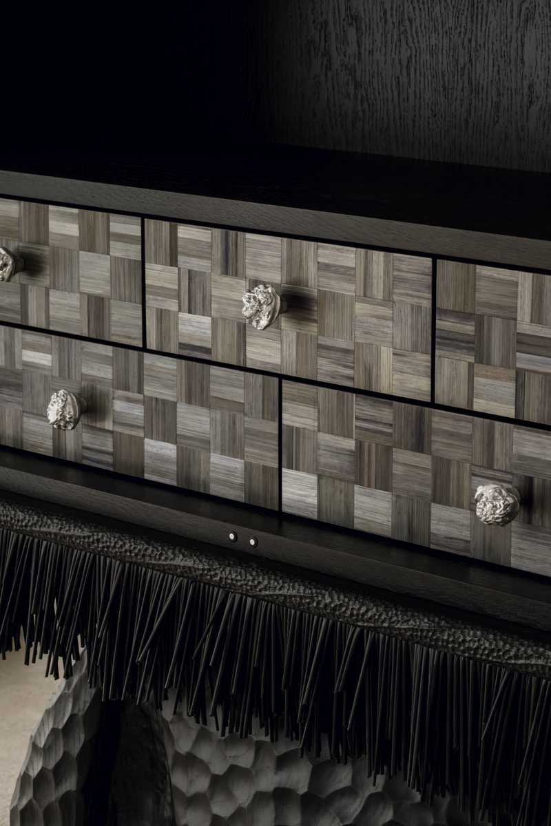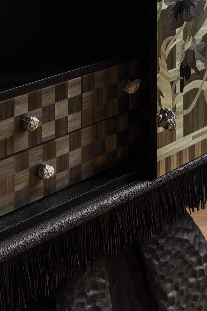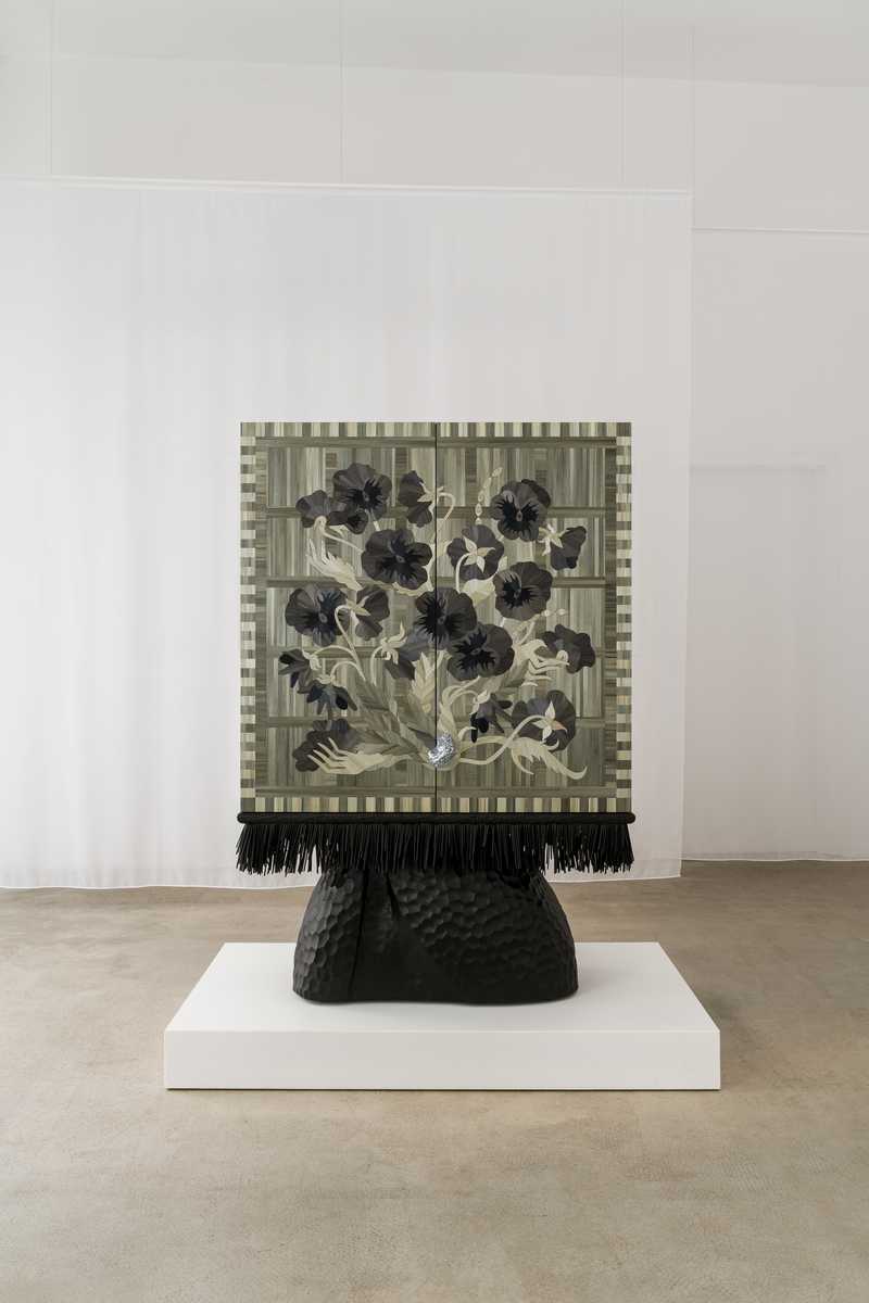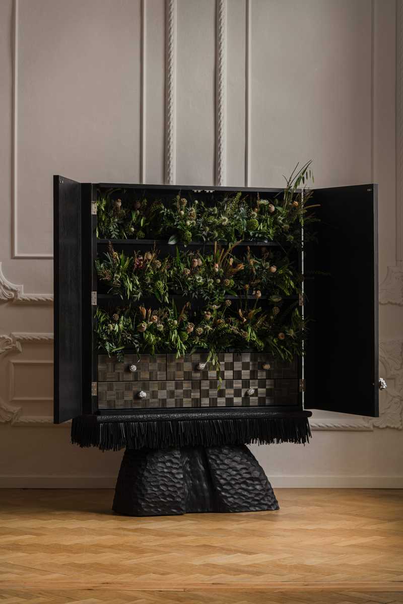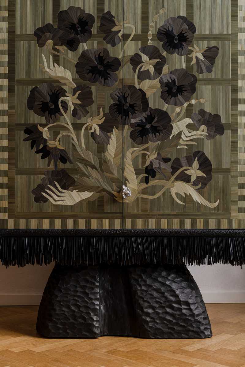 Inspirowana polichromiami Stanisława Wyspiańskiego z 1895 roku, serwantka wykonana jest z surowego, ręcznie żłobionego dębu skontrastowanego z gładką, połyskującą powierzchnią uzyskaną w technice intarsji ze słomy. Obiekt łączy w sobie ludowość z mieszczaństwem, prowokując pewną opowieść. Opowieść o wspólnej i trudnej historii warstw społecznych, podkreśloną osobistym ładunkiem emocjonalnym artystki.